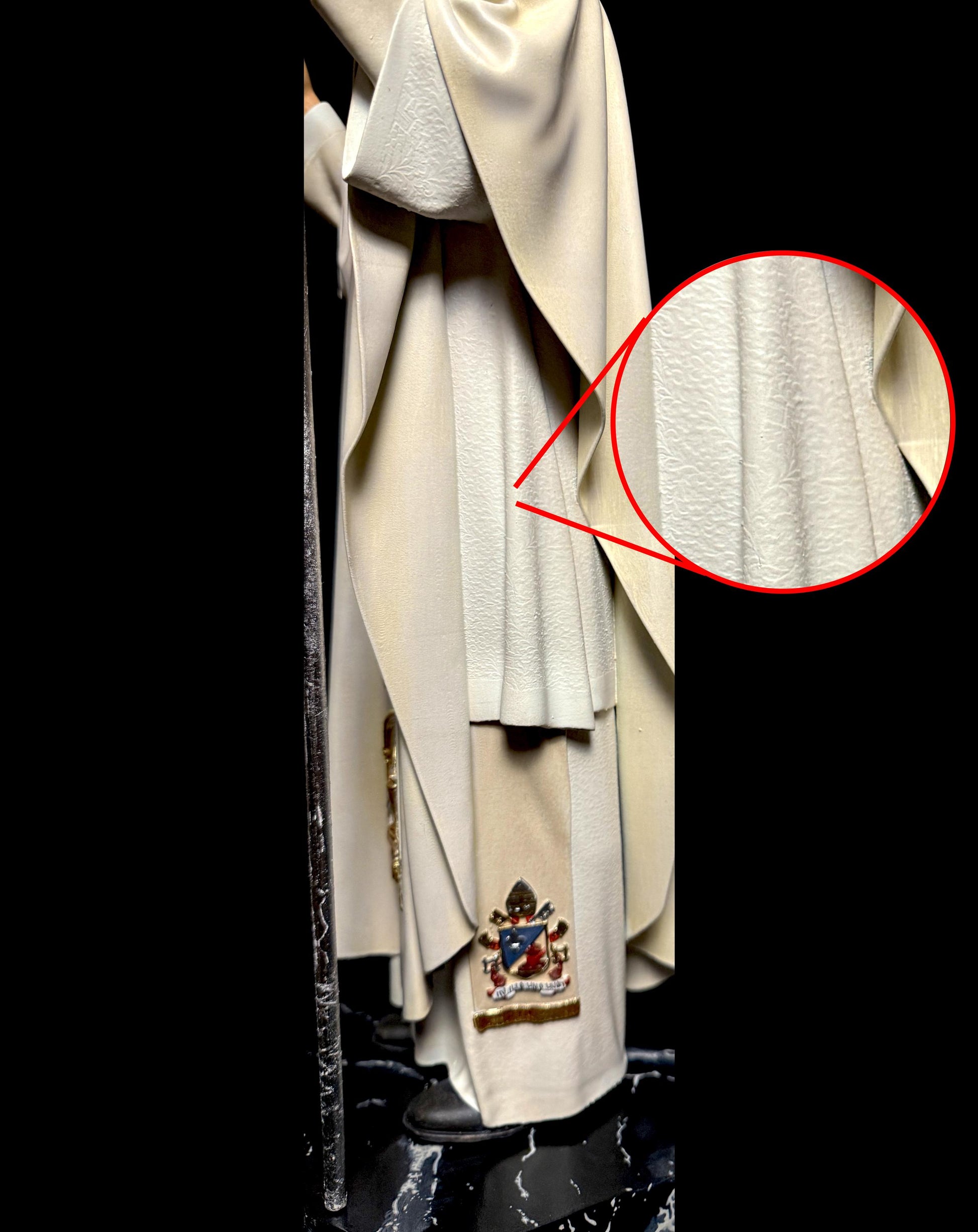 Includes ornate bishop’s crozier with crucifix and full papal attire